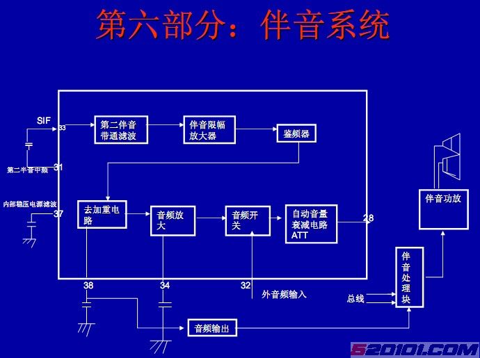 入,( 入,(31 31)脚输出第二伴音中频信号( )脚输出第二伴音中频信号(33 33)输入。相关电路有: )输入。相关电路有:( (35 35) )