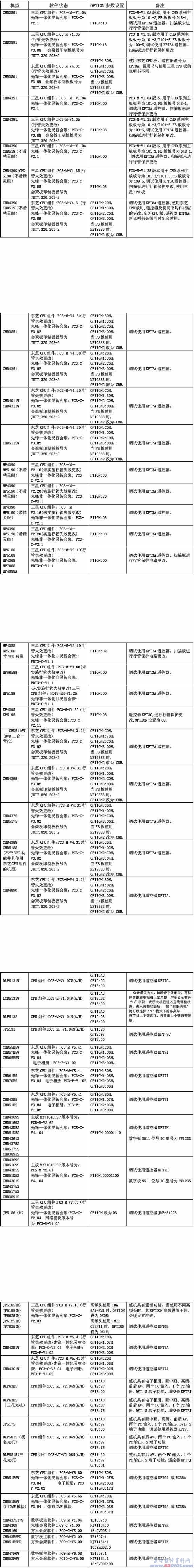 长虹CHD系列影院电视现国内机机型软件状态明细表 2012-11-04 18:57:56 阅读 290 次 评论 0 条 版权声明:本文为转载文章,版权归原作者所有,欢迎分享本文,转载请保留出处! 点赞 分享: PREVIOUS:长虹LT3712液晶电视(LS10机芯)二次开机后白板无屏显,但声音正常 NEXT:长虹PDP平板电视对比与差异汇总表 文章导航