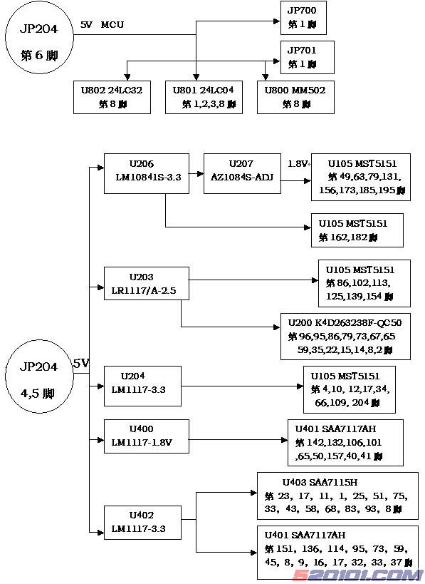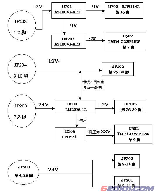 2、主板上各稳压管管脚电平一览表