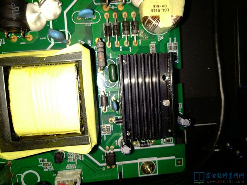 接修到这台遭雷击后的长虹液晶电视,拆开机器发现电源板保险丝已经烧断,场效应管短路,场效应管S极过流检测电阻烧断,6脚贴片电源管理芯片NCP1251A炸坏还有一些贴片元件也一并损坏,清理全部更换。开机没有电压输出(检修时忘了拍照了,装好才想起,想想算了。)