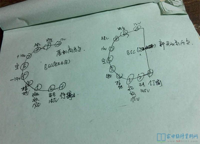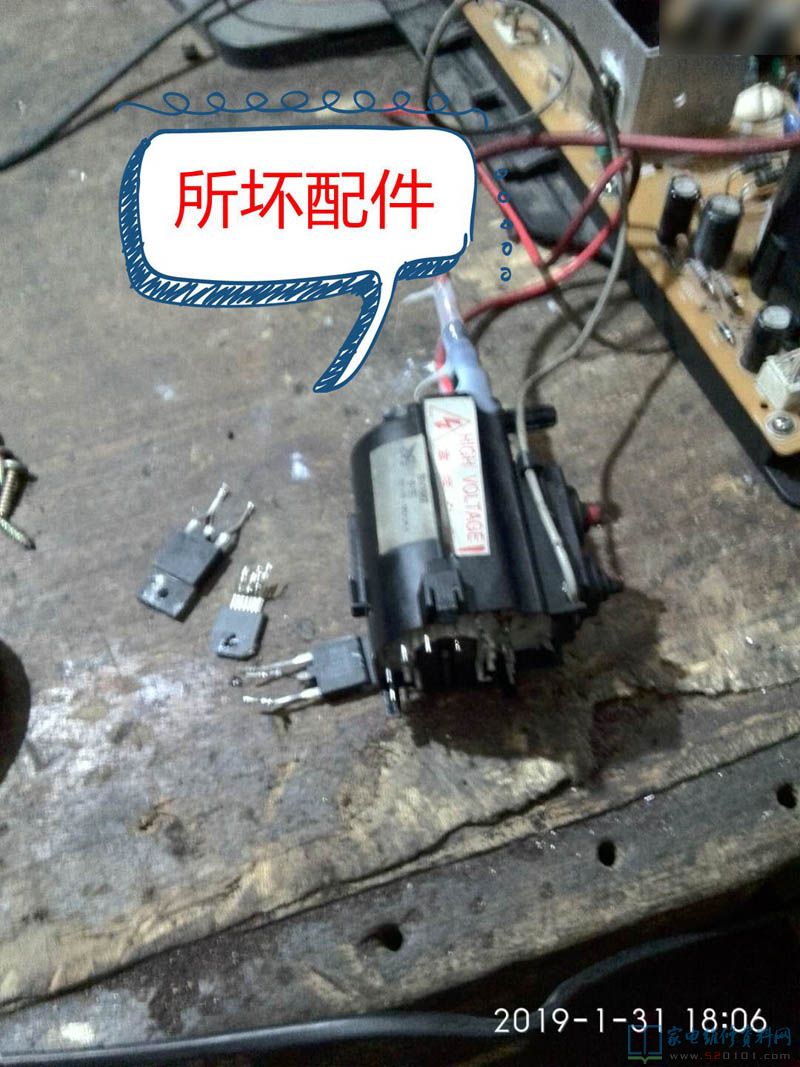 今年年初的时候接一台长虹CRT彩电,型号是PF29156,故障现像,三无。首先拆机,发现高压包打火高压线的入口处已烧焦,开机,听有吱吱声。肯定打火造成行管击穿。焊下测量已坏。用灯泡做负载,测量正B电压正常145V。怎么办呢?这种高压包手头上又没有,快递已放假。表弟的电视,过年又急着要看。打火处涂点AB胶看能不能用。行管装上,开机,还是打火,只听"吱"的一声,就“吱”"吱"。看来D2553又去掉了。打电话联系本市电子配件商店,没有。又联系地区商店,只有BSC68Z,原机是BSC68Z6(B)。看来还要改装一下。下午到货,装机,下部一条线,看来打火造成场块也烧了,原机是DTA4864AJ,手头上只有DTA4863AJ,查一下可以代换。更换后故障修复,一切正常。