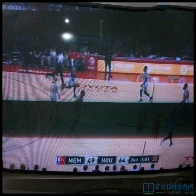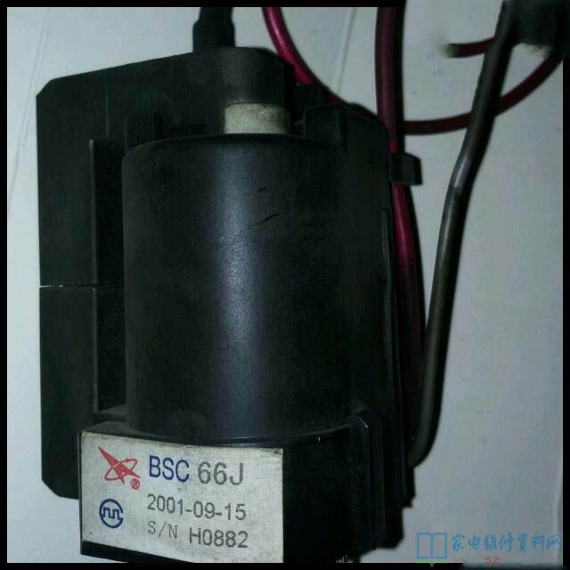 用遥控器开关机控制正常,说明CPU存储器基本正常。拆下行输出型号66J,属686号。用行输出检测仪判断是正常的,短路一圈指示灯熄灭。细看高压包有鼓包处。高压包是坏的。行管D1651二极管档位正常,用数字表200M档位正反为1M 正常是1M和80M 。行管是软击穿不容易发现。为了减少库存,用库存新高压包485号(67s)代替,两个高压包的区别是代换包没有180V,其它功能脚一样。行管用D2553,高压包在磁芯上用绝缘导线绕10圈,分别焊在+B和180VZ整流管处,开机待机65V手柄开机+B132V出现雪花光栅,接AV1信号试机,声图色一切正常。 三、为了用户使用的安全,换2K可调把+B电源电压调整为图标的130V,疲劳试验正常,行场幅度正常,合盖收工。