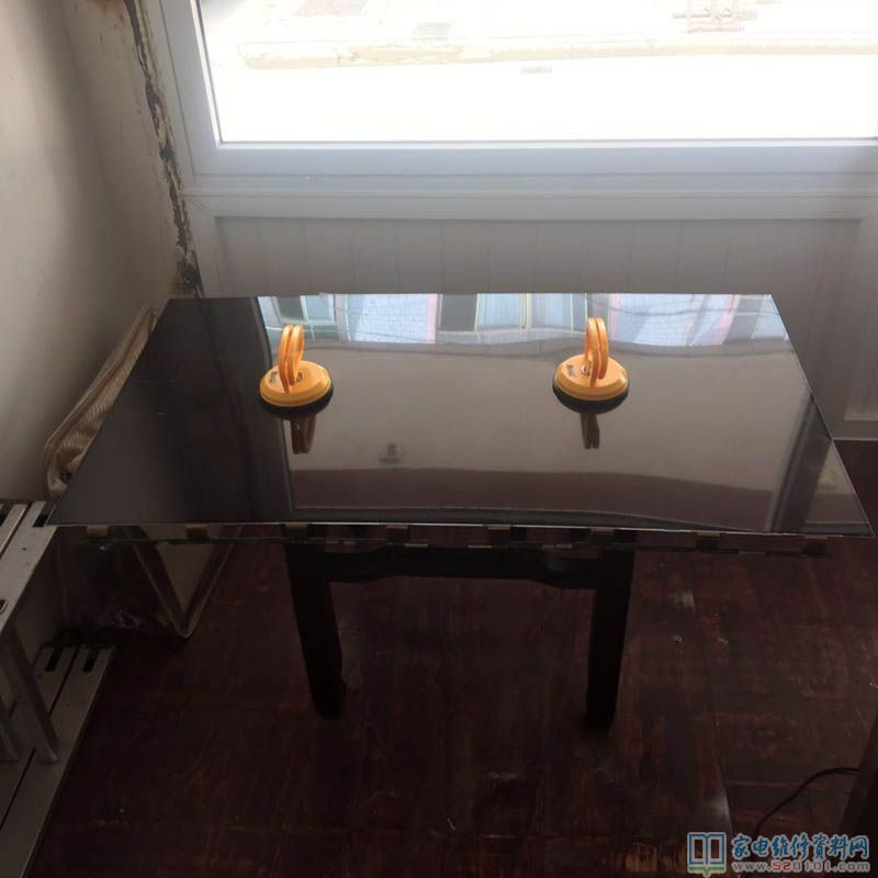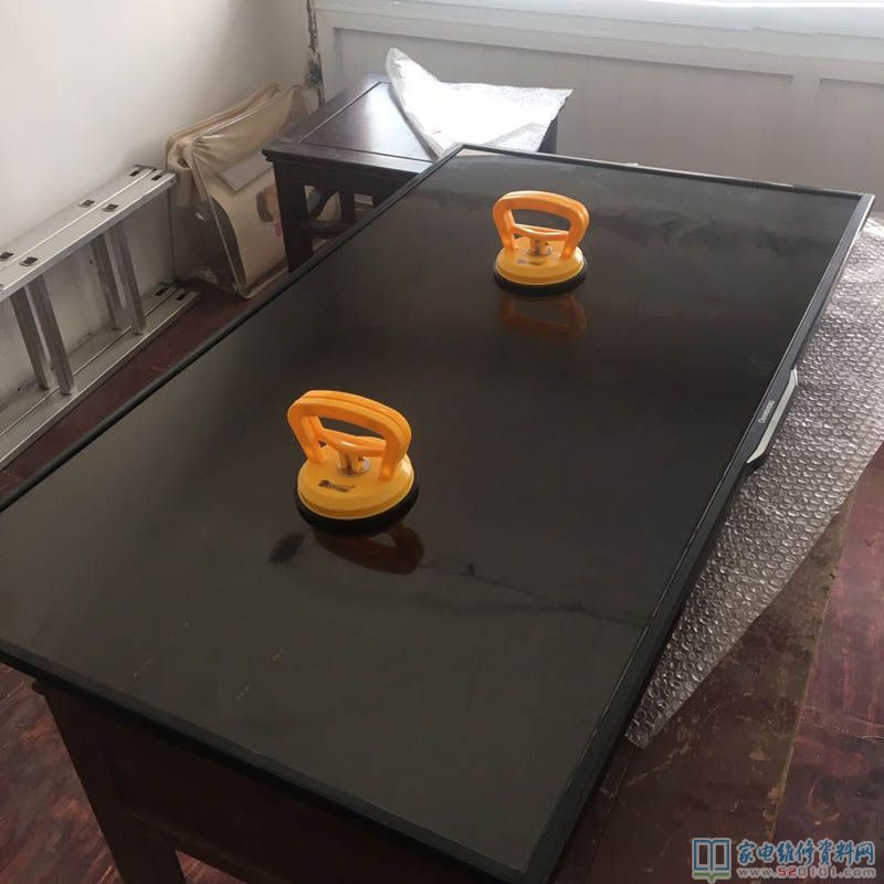 首先找一张桌子,上面放好保护类的泡模,一步一步的拆,直到去掉边框了,前面是屏朝下拆的螺丝,现在要反过来屏朝上了,这里是关健了,我一个人,一个大屏怎么安全的把屏移开,现在要用到我的武器了,玻璃吸盘就是它了,二个才30块钱不到,一个人轻松把屏安全移开,具体请看下图。
