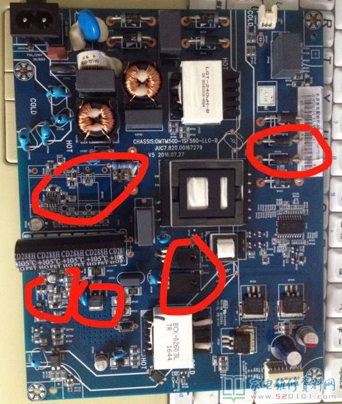 接修一台长虹50E8液晶电视,其电源板型号是JUC7.820.00167279,故障表现为所有的电压无输出,由于PFC电源管理芯片FA1A00炸飞了不知型号,在淘宝花5元买了份图纸,坏的元器件有DP404、DP405、DP406、DP407、RP1 0.15R、RP508 47R、ZDP307 5.1V、FA1A00、QP204、QP205、QP206,最终查明原因为LED背光电源次级整流管击穿引起大面积损坏。另外奉上此电源板电路图链接。