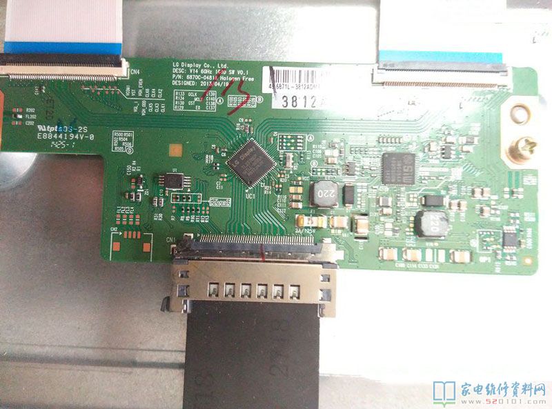 接修一台长虹LED49C1080N液晶电视机,其主板型号为TP MS881 PC701,听同行叙述之前是灰屏,换了块逻辑板有了图像就是花屏,又换了一块逻辑板仍旧,无赖只好找长虹售后进总线调屏参也无果。售后说是主板坏了,同行又购主板换上仍是“涛声依旧”。