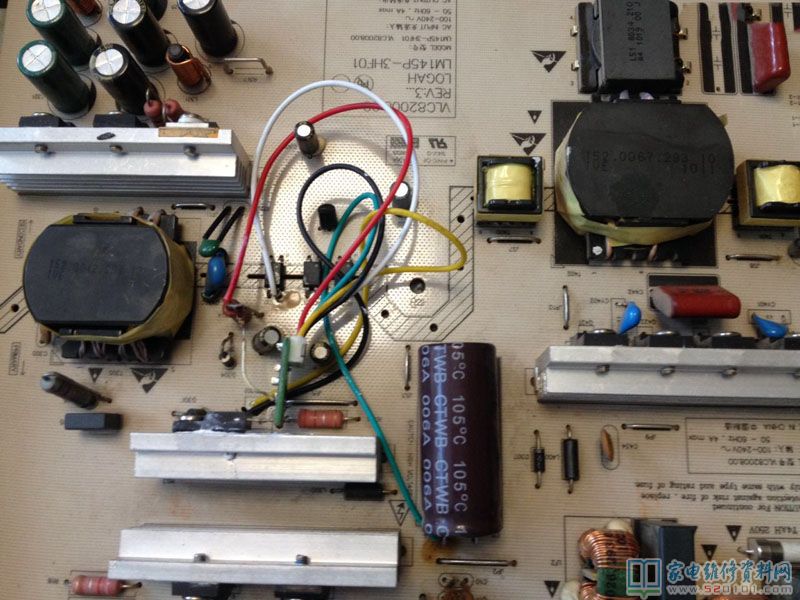 最近接修一台长虹ITV32750X液晶电视,故障表现为遭雷击后电源板损坏,电源芯片6742MR短路,手里没有现成的。FAN6754可以代换,但是手里已经用完。于是想用万能厚膜代用,改后发现无法带负载,于是将DM0465换成Q0565结果还是无法带负载。该万能厚膜稍加改动也可以用CQ1265代换,于是用CQ1265换上,电路参照1265电路在启动脚接200k到300v,结果电视机修复,一个1.8元厚膜加个1265不到6元钱解决问题,这个CQ1265还真好用。