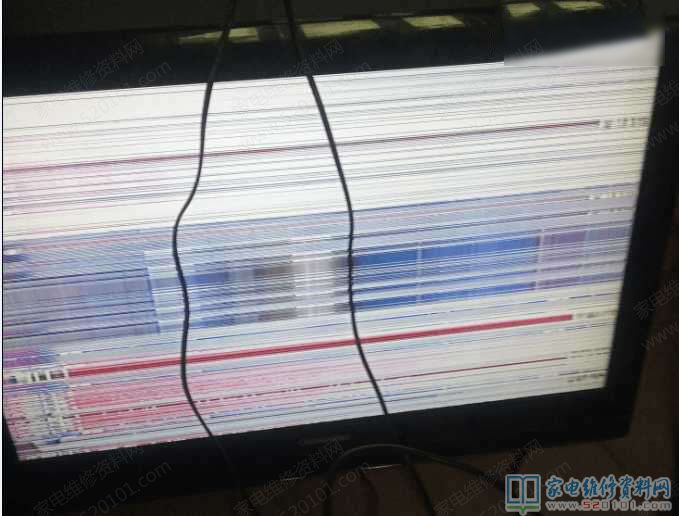 接修一台长虹LT26620液晶电视,故障表现为花屏,用户反映前段时间就出现问题,只不过是每次开机花屏,一分钟以后就会正常收看,现在一直都花屏。插电试机果然如此,故障看图,拆机检查。