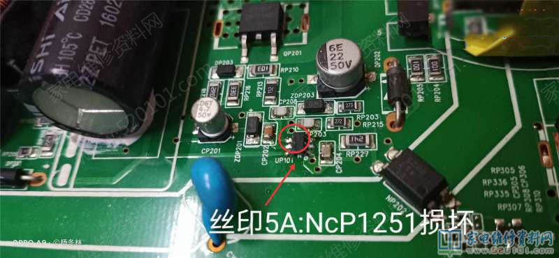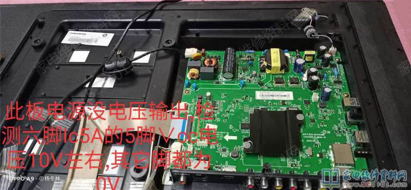 最近接修一台长虹39D3700I液晶电视,故障表现为上电开机没反应,面板指示灯也不亮,三无现象。首先拆后盖,首先检测电源大滤波电容两端电压,300V电压正常。电源管理芯片是一个六脚的贴片,仔细看标号为5AXXXX,实际上是NCP1251电源块。其5脚为VCC,测量只有10V左右,而测量其它脚位电压时,都为0V!感觉此芯片早已损坏。立即换此电源块5A,接着上电试机,见电视启动画面出现!接AV信号源,图像正常,可没声音出来!