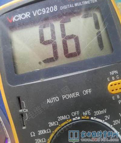 此机电源板有PFC电路,没有单独的待机电源,板上总共有4只光耦,其中两只靠在一起,上面还粘有一块白胶,是背光电路上使用,还有一只是背光电路的保护电路使用,还要一只是主电源稳压电路使用。在路用双万用表测量靠在一起的光耦,发现一只正向压降有点大,3脚4脚指针表无抖动(光耦1脚接数字表红笔,2脚接黑笔,二极管档。3脚接指针表红笔,4脚接黑笔,电阻10K档),拆下再次检测却是好的,原样装回。还用数字表测一大功率场效应管GS用二极管档测,鸣响,以为短路。放在恒温台上加热一会儿用电烙铁焊下,焊下测量又是正常的,又原样装回。再次用双表在路测量,发现指针表测量时已轻微摆动。又把背光电路那个8脚IC AP4310补焊。把电源装机,开机后背光已点亮,一切正常。用数字表测量灯条插头电压为105.3V。