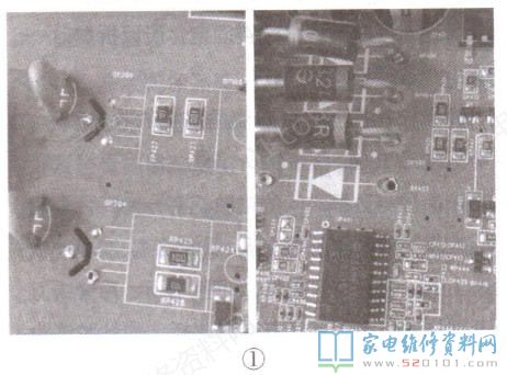 一台长虹50C1U型液晶电视,故障表现为开机三无,拆机检测,查5A保险丝开路,主电源开关管QP204、QP206(型号均为MDF5N5OF)击穿,如图1所示,说明电路中存在短路元件。查主电源初级电路,未发现异常,转向检查次级负载电路,发现LED供电升压二极管DP407(型号为SR3200)击穿。检查上述损坏元件周边,未见异常。更换DP407后试机,测得主电源输出的12V正常,LED端电压为139V,也正常;接上信号,图像、声音均正常。