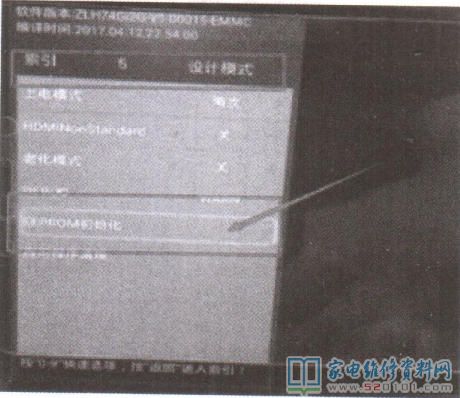 接修一台60D3P型机,更换主板后屏上出现左右两幅图像,如图1所示。根据故障现象分析,怀疑总线中的屏参数据错误。首先进入总线然后打开设计模式菜单,选择"EEPROM初始化”,如图2所示。