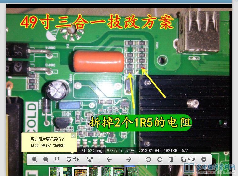 长虹LED49C1000N液晶电视灯条技改的方法 2022-01-09 05:34:55 阅读 1114 次 评论 0 条 摘要: 针对长虹LED49C1000N灯条和长虹LED49C1080N灯条技改方法,若是电源板接口旁边RS51电阻换成1欧电阻,若是3合1板就拆掉(1R50)2颗贴片电阻就可以。 针对长虹LED49C1000N灯条和长虹LED49C1080N灯条技改方法,若是电源板接口旁边RS51电阻换成1欧电阻,若是3合1板就拆掉(1R50)2颗贴片电阻就可以。 版权声明:本文为转载文章,版权归原作者所有,欢迎分享本文,转载请保留出处! 点赞 分享: PREVIOUS:TCL L46F11液晶电视黑屏的故障维修 NEXT:三星UE46C5100液晶电视开机无背光的维修 文章导航