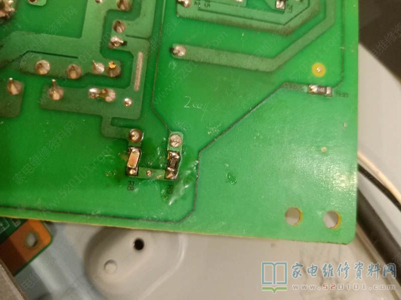 联想到长虹的其他一些机型也是PFC检测电阻下面的红胶漏电导致PFC电压升高,这个机型却是PFC直接不工作。这也可能是改机型的一类通病,大家遇到此类故障时,可以先检查下这里。