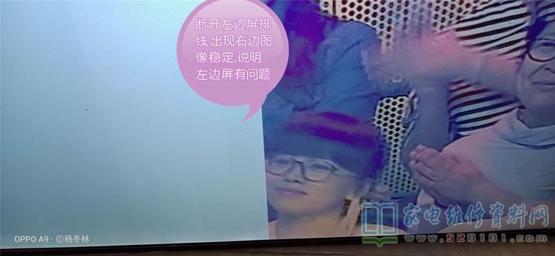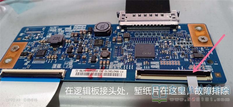 长虹LED42B4500i液晶电视图像上下跳动的故障维修 2022-01-28 18:55:23 阅读 1144 次 评论 0 条 摘要: 接修一台长虹LED42B4500i液晶电视,上电开机,上信号线,只见图像不停地上下跳动,如下图所示。 断电,拆后盖首先拆掉逻辑板一边的进屏排线 接修一台长虹LED42B4500i液晶电视,上电开机,上信号线,只见图像不停地上下跳动,如下图所示。 断电,拆后盖首先拆掉逻辑板一边的进屏排线,上电开机,只见右边的图像正常,左边白屏。 出现这个情况,首先采用堑纸片隔离法,将纸片插入卡槽内试机,当纸片堑在下图位置时,上电试机图像完美稳定了。 版权声明:本文为转载文章,版权归原作者所有,欢迎分享本文,转载请保留出处! 点赞 分享: PREVIOUS:金正24英寸液晶电视电源指示灯亮但屏幕不亮 NEXT:创维37E61HR液晶电视通电绿灯亮但不开机的维修 文章导航