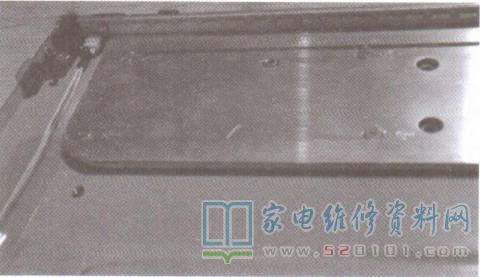 接修一台长虹50Q1F型液晶彩电,故障表现为开机后黑屏。上电试机,背光不亮。拆机检查,发现该机屏内有4组灯条。用点灯器检测,三组灯条正常发光,显示的电压值为85.6V-86V,-组灯条不亮,显示的电压值为114V~122V,看 来该组灯条有问题。拆开液晶屏,发现该机左右侧各安装有一根灯条(长约547mm,宽约6mm),每根灯条上有60只灯珠。为保证可靠性,决定将灯条全部换新。用小刀分开灯条与散热板之间的粘胶,再用布蘸上汽油擦去残胶,换.上新灯条,如图1所示。