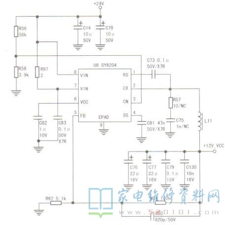 长虹UD42B6000ID液晶电视开机后灰屏的故障维修 2022-03-02 18:28:56 阅读 980 次 评论 0 条 摘要: 接修一台长虹UD42B6000ID液晶电视,开机后灰屏。拆机检测上屏供电为24V (正常值为12V),逻辑板上的供电保险已经断路,主板.上上屏供电模块U4输入电压为24V,明显不对(正常值为12V)。U4 接修一台长虹UD42B6000ID液晶电视,开机后灰屏。拆机检测上屏供电为24V (正常值为12V),逻辑板上的供电保险已经断路,主板.上上屏供电模块U4输入电压为24V,明显不对(正常值为12V)。U4的输入电压来自以U8( SY8204 )为中心的DC-DC电路,如图所示。经查电阻R56(56k)开路。更换R56后12V电压恢复正常;更换TCON板后,故障排除。 版权声明:本文为转载文章,版权归原作者所有,欢迎分享本文,转载请保留出处! 点赞 分享: PREVIOUS:长虹液晶电视ZLH66G-iT机芯主板维修图解 NEXT:长虹UD49C6000iD液晶电视指示灯不开机无法开机 文章导航