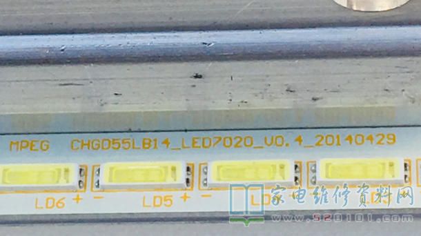 接修一台UD55C6000iD液晶电视,故障表现为三无。拆机检测,发现电源板(型号:HSL60D-12M7-110)上的Q501、Q502、U501、F101损坏,更换所有损坏元件后试机,各组输出电压均正常,但背光闪烁,约1min后开关电源又被烧毁。测量背光电路接口对地阻值,发现LED-3、LED-4端对地短路。拆开液晶屏(屏型号:C550UI3-E1-L(G1)),更换背光灯条,修复电源试机,故障排除。