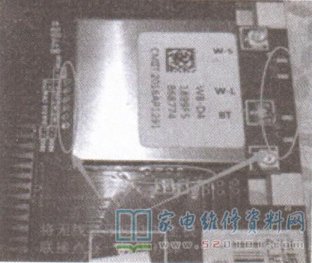 由于遥控器及无线网络均异常,怀疑板载的蓝牙无线模块(WB-04)不良。检查主板上W-S、W-L、BT端与对应天线如图所示,均正常。