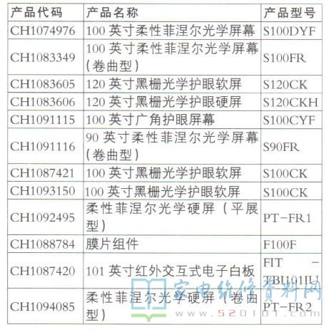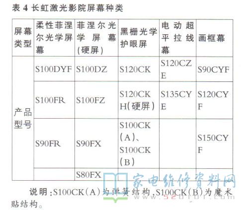 根据产品形态,完成屏幕状态确认及调整,按照对应说明书要求完成组装。目前长虹激光影院屏幕种类有5类、15个产品型号,如表4所示。
