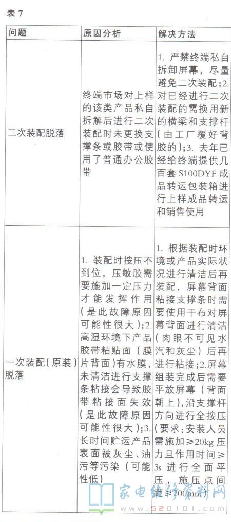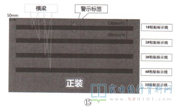1、柔性菲涅尔光学屏幕(S100DYF屏幕)正装横梁安装位置,如图15所示,吊装横梁安装位置如图16所示。横梁装配异常脱落情况分为三种:装配位置错误,如图17所示;拆卸二次装配脱落,如图18所示;一次装配(原装)脱落,如图19所示。装配异常的解决方法如表7所示。