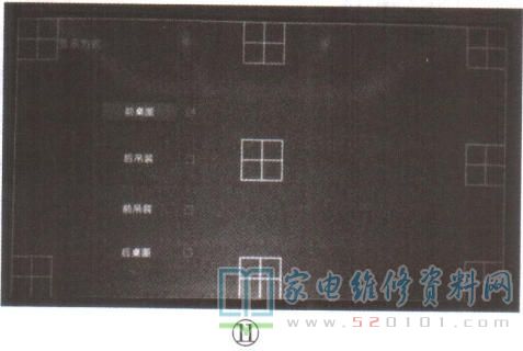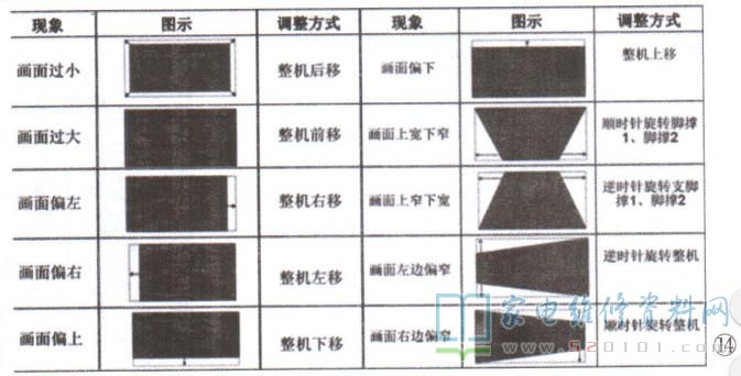 将电视画面复位、底部脚钉复位,投出水平矩形的画面即可,如图1所示。