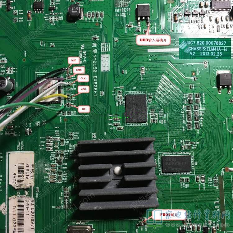 长虹JUC7.820.00078827板(ZLM41A-iJ机芯)EMMC点位图 2022-03-30 20:56:57 阅读 620 次 评论 0 条 摘要: 长虹JUC7.820.00078827板(ZLM41A-iJ机芯V2)EMMC点位GND、CMD、CLK、VCC、D0如下图所示,仅供大家维修参考。 长虹JUC7.820.00078827板(ZLM41A-iJ机芯V2)EMMC点位GND、CMD、CLK、VCC、D0如下图所示,仅供大家维修参考。 版权声明:本文为转载文章,版权归原作者所有,欢迎分享本文,转载请保留出处! 点赞 分享: PREVIOUS:长虹JUC7.820.00129215主板(ZLS59G-i-4机芯)EMMC点位图 NEXT:熊猫液晶电视TP.RT2982.PB801板EMMC点位图 文章导航
