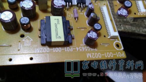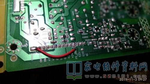 根据这个结果判断主板故障。本打算更换一块主板。但是手上又没有现货。顾客又等着。突发奇想。能不能把on/off端口连在pson端。用背光开启电压来控制背光电源(pson电压控制Q9401开起。进一步控制IC9101工作)。抱着试一试的办法。切断pson端。用一根短线连接到on/off。试机结果一切正常。接上图像发现亮度也没有任何影响。