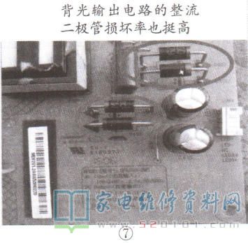 其中,整流二极管D401 ~D404损坏率较高,其击穿或开路均会造成无背光电压输出。