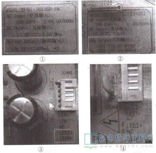 为说明背光电路的其他关键测试点,下面以HSL35D- 2MC型电源二合一板为例,其背光电路如图5所示。