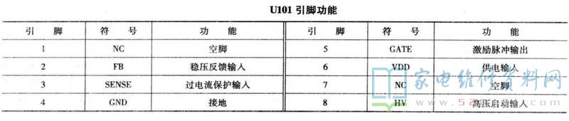 该电源板的集成电路引脚功能和参考电压见表1、表2。