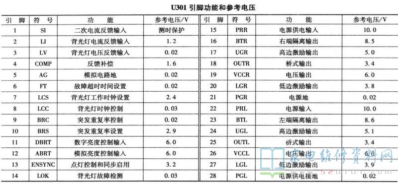 先查逆变器的12V供电是否正常,检测ON/OFF使能控制电压是否为高电平,测量亮度调整电压是否正常。若上述工作条件电压正常,测量双MOS开关管U302、U305 是否击穿或损坏,升压变压器是否断路。