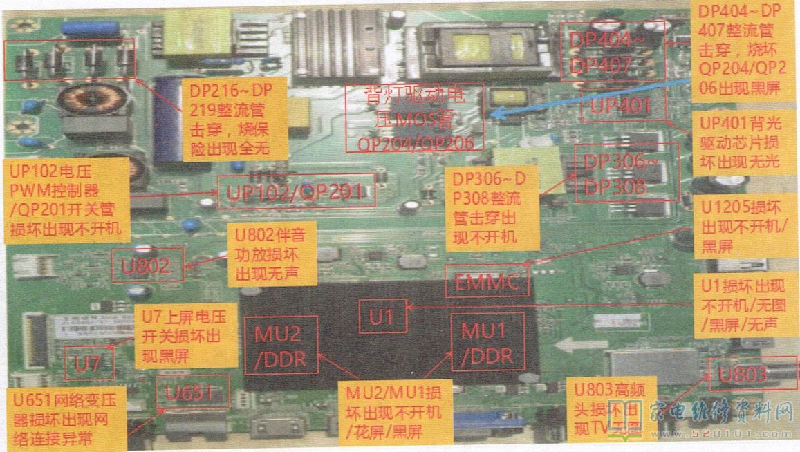ZLS58Gi机芯板易损故障元件图解如图3所示。