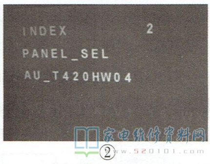 接修一台长虹LT42729F液晶电视,故障表现为开机后花屏,如下图1所示。根据“先软件后硬件”的检修原则,决定先进入总线,查看屏参值是否正确,具体方法如下:在TV状态下,先将音量调至“0”,然后连续按遥控器(RP57C 型)上的“静音”、“菜单"及数字键“6、1、1、5”进入总线,再通过“音量”键打开“INDEX2”菜单,按“频道”键选中“PANEL SEL”一项,将其值改为“AU T420HW04" ,如图2所示。遥控关机后再开机,故障排除。