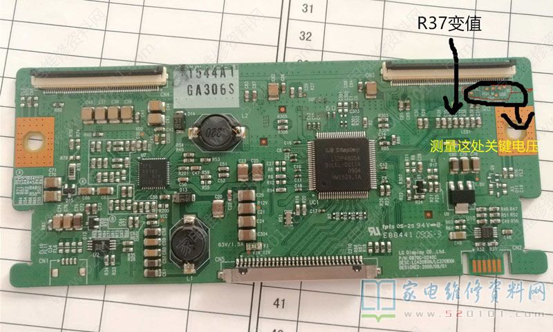 长虹LT37810U液晶电视图像画面跳动的故障维修 2022-05-27 03:37:24 阅读 1082 次 评论 0 条 摘要: 接修一台长虹LT37810U液晶电视,故障表现为开机屏幕满屏细细条纹画面跳动,声音正常。此机器屏型号是LC370WXN,逻辑板板编号LC420WXN/LC370WXN,检查连接GSC端的R37电阻变值,更 接修一台长虹LT37810U液晶电视,故障表现为开机屏幕满屏细细条纹画面跳动,声音正常。此机器屏型号是LC370WXN,逻辑板板编号LC420WXN/LC370WXN,检查连接GSC端的R37电阻变值,更换R37电阻解决问题。 版权声明:本文为转载文章,版权归原作者所有,欢迎分享本文,转载请保留出处! 点赞 分享: PREVIOUS:LG 55GB7800-CC液晶电视不开机的通病故障维修 NEXT:海尔32英寸液晶电视开机10分钟后图像重影变成红色的故障维修 文章导航