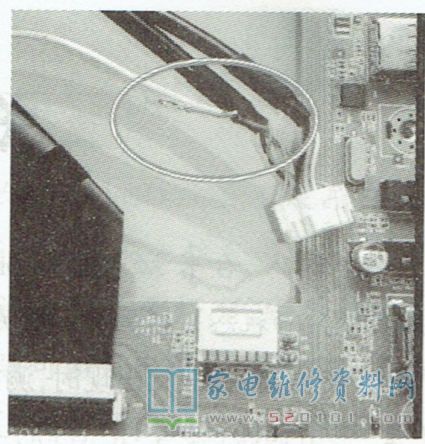 接修一台长虹UD49C6000ID型液晶彩电(ZLS47HiS机芯),上电后指示灯亮,不开机。将主板拆下单独测试,开机正常,但装机后二次不开机。分别断开主板的外接功能电路试机,发现断开无线遥控接收板后可以开机。检查无线遥控接收小板,未发现异常。测量主板与遥控接收板相连排线的各脚电压,发现主板上插座CON20(通过排线与无线遥控接收板相连)中的+5V供电为0V ,明显异常。断电测量,该+5V供电端对地短路。因手头没有该主板的电路图纸,一时难以找到短路点,决定采用以下变通方法修复:拔出原+5V供电线的插针,用一根导线将插针与主板上的红外遥控供电5V相连,如图1所示。通电试机,故障排除。