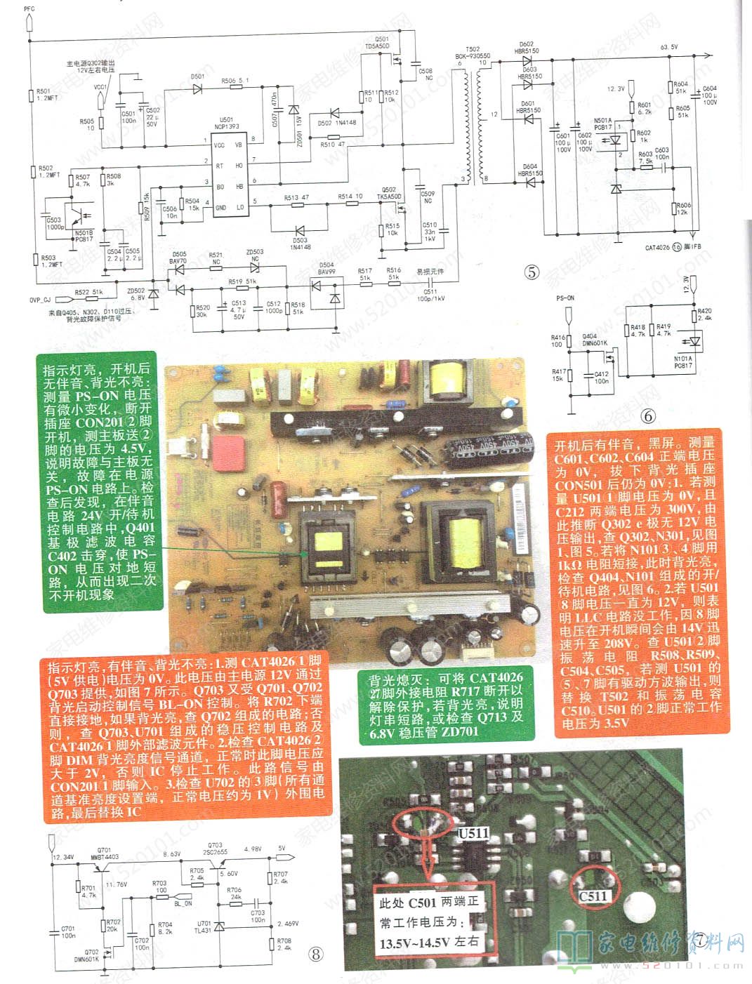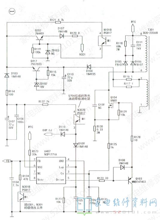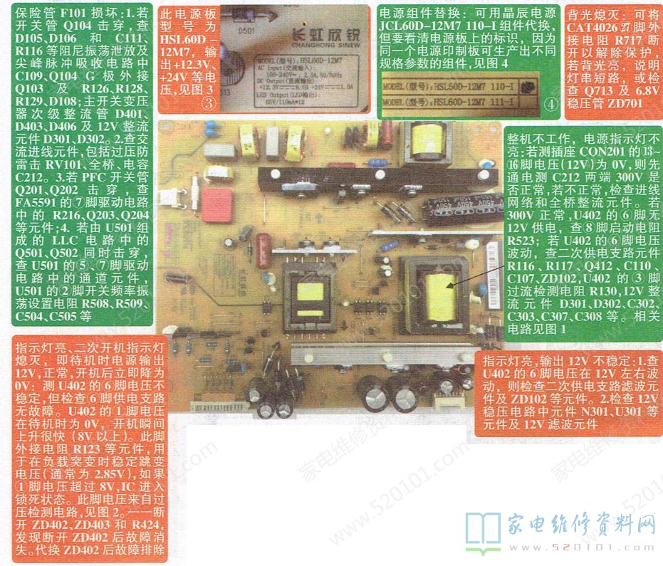 长虹HSL60D-12M7 110二合一电源板维修图解 2022-08-16 19:28:22 阅读 804 次 评论 0 条 摘要: 该电源板主要用在长虹ZLS47机芯部分产品上,其主电源由NCP1271A (U402) 和T301组成,形成12V、24V主电压;PFC电路以FA5591( U201 )为中心;背光电压形成电路以NCP1 该电源板主要用在长虹ZLS47机芯部分产品上,其主电源由NCP1271A (U402) 和T301组成,形成12V、24V主电压;PFC电路以FA5591( U201 )为中心;背光电压形成电路以NCP1393( U501 )为中心,LED灯串恒流控制由CAT4206( U202 )完成。 版权声明:本文为转载文章,版权归原作者所有,欢迎分享本文,转载请保留出处! 点赞 分享: PREVIOUS:LETV乐视X60液晶电视软件升级操作方法图解 NEXT:TCL L55F3700A液晶电视(MT55CD机芯)刷机升级操作教程 文章导航