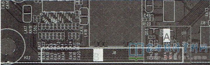若按上述方法处理后,噪音还是很大,则增加如下措施:先在板载WiFi模块右下侧(图2中的方框A区)粘贴绝缘胶带,再在板载WiFi模块下侧(方框B区)粘贴上导电布(不推荐使用导电铝箔,导电布型号可选用JUC7.725.00135668,物料代码:850122368,也可用其他型号),通过裁接等方式,覆盖方框B区即可,如图3所示。