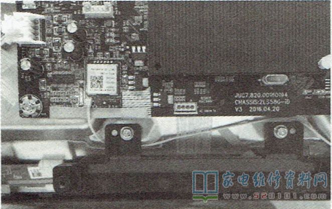 针对部分长虹40U3液晶彩电,整机噪音偏大的问题。解决方法是:拆开后盖,将WiFi天线穿过扬声器支架左侧螺钉柱接入主板WiFi插座,确保WiFi天线与印制板下边缘呈垂直状态,如图1所示, 然后用胶带对图中方框内的WiFi天线进行粘贴,以固定WiFi天线位置,确保WiFi天线与印制板下边缘呈垂直状态。