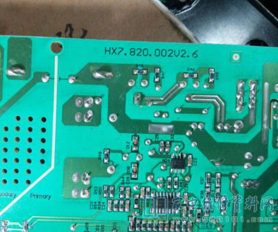 接修一台长虹LT42866FHD电视机,故障不开机,测量发现电源板坏了,电源板的一个PFC的STR-E1565模块坏了,淘宝买了4个回来,老烧Q804大管18N507,此板淘宝需要80元左右,买模块已经去了40元了,还烧了几个大管,查来拆去没有发现问题,去看看仓库里还有个LT37700电源板,插孔都差不多,电压也都对,于是插下去,试机红灯变绿灯还是不开机。测量几组电压发现U31输出1.011v电路板上标注1.8v ,U31丝印EH18A,输出应该是1.2v ,用BM1117-ADJ代换测试输出1.34v,图像出现,由此证明板号JUJ7.820.341V5.1和板号HX7.820.002V2.6可以互换。