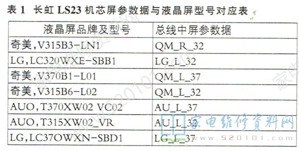 该机用LC370WXN-SBD1屏,具有OPC功能。若存储器U14中的屏参数据变化,使主板与逻辑板和逆变器不对应,也会出现本故障。换上一只空白存储器24C32后开机,,屏上出现光栅,但图像异常。进入总线,选中"System" ,再进入其子菜单,调整"PANEL TYPE"后数据为"IG L 37”,故障排除。该机芯使用屏与屏参对应表见表1。