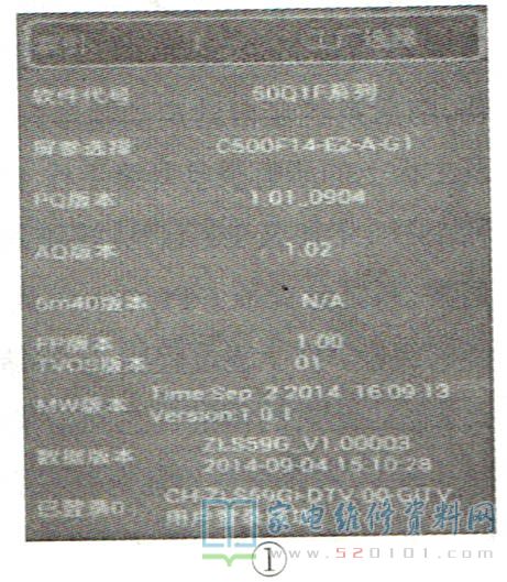 第二项“屏参选择”后显示的“C50OF14-E2-A-G1"便是该机液晶屏的型号缩写。若屏参选择错误,则会出现花屏等故障。