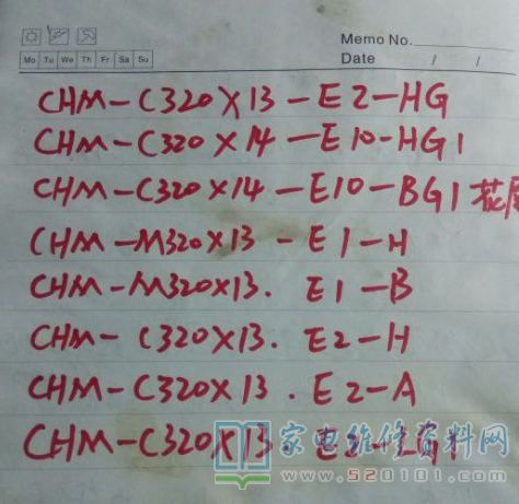 再按主机节目键^,调到屏参项,再按遥控器的音量减键选择屏参项,选好一次,遥控器关机,再开机,看看图像怎样,不行,在重复上述步骤,直到图像正常为止,我是调到CHM-C320X13-E2-LG1。后图像正常了,我是用RP57B遥控器调得,原装遥控器是RL67K。