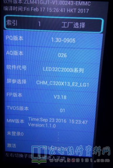 接修一台长虹LED32C2000i液晶电视,故障表现为原机开机红灯亮,不开机,黑屏,也不亮绿灯,MT5505主芯片烫,怀疑主板坏了,网上买了板子回来装上图像倒置,网上搜索,首先按遥控器的菜单…0816进总线,看屏型号修改屏参,遥控关机即可,就按照网上说的,按菜单键再按0816,出现屏参模式,如下图所示。