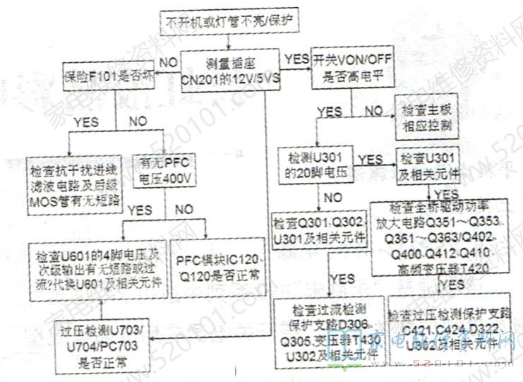FSP107-2PS01电源(图纸)是“永胜宏"FSP系列中适用26(LS23机芯)液晶电视的一种二合一开关电源,该开关电源应用液晶电视型号有:LT26616、LT26620、LT26629、LT26620A等。故障检修框图如图1所示,维修数据如表1所示。