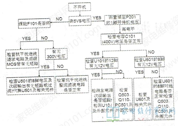 FSP306-4F01(图纸)电源是“永胜宏"FSP系列中适用32~42英寸液晶电视的开关电源,该开关电源应用液晶电视型号有:LTDV32876、LT37710、LDTV40876F、LT42900FHD、LDTV42866U、LDTV42700FHD、LDTV42876F、LDTV42810FU、LDTV42876F等。故障检修框图如图1所示,维修数据如表1所示。