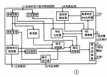 接通电源瞬间,。+300V电压经R814、IC801⑧脚进入IC内部启动源触发器中,启动源触发器工作,其启动电流约为9mA。IC801⑥脚外接电容C812充电,当C812的充电电压(IC801⑥脚电压)达到13V 寸,IC801。开始工作,其内部的启动电流源截止。