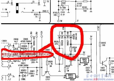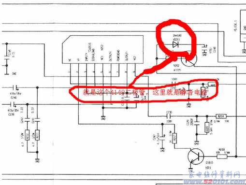 但是经过这几年的摸索,总结出了一些维修经验,出现这个故障几乎都是二极管4148和稳压管性能不良,你用万能表是测量不出来好坏的,特别是在CPU待机电路,和保护电路,还有伴音块TDA2616第二脚静音电路,像采用LA76931还有OM8370解码块这类康佳的彩电我不知到遇到了多少这样的问题,大家遇到这类的问题的时候不烦代换下认为出现故障地方的稳压管或者4148二极管,今天我就又修了一个康佳P2958I这类故障,就是没有声音。我直接查伴音块TDA2616第二脚,是低电平,低电平就是静音了,正常要高电平,我就直接代换静音电路的4148二极管,如下面的附图,就修好了伴音的问题!这就算是是我修彩电6年多对康佳CRT彩电的一点技巧吧!为了更好的说明我上传一个康佳P2958I数字高清彩电TDA2616伴音电路的截图,附图纸下载地址。还有康佳P21SA387的待机电路截图和彩电图纸,大家可以那拿这个参考下。