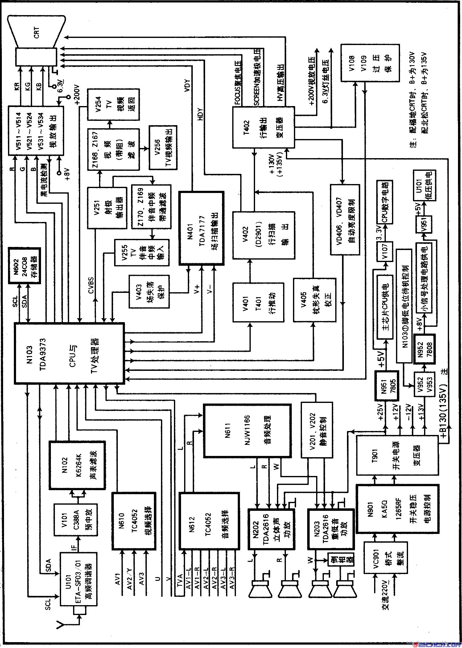 康佳P29SK061型彩电-供电流程 2017-05-16 19:26:44 阅读 620 次 评论 0 条 摘要: 康佳P29SK06l型彩电的供电流程如图2所示。在P29SK061型机的交流电压输入电路中设立了由C901、L90l、C902等元件组成的线性共轭滤波电路,滤除交流输入电压中的高频杂波干扰。由于篇幅原因,此电路在图2 康佳P29SK06l型彩电的供电流程如图2所示。在P29SK061型机的交流电压输入电路中设立了由C901、L90l、C902等元件组成的线性共轭滤波电路,滤除交流输入电压中的高频杂波干扰。由于篇幅原因,此电路在图2中省略未画。 资料来源: www.520101.com 版权声明:本文为转载文章,版权归原作者所有,欢迎分享本文,转载请保留出处! 点赞 分享: PREVIOUS:东芝2500XH型大屏幕彩电故障检修两例 NEXT:长虹C2588Z彩电VD405不良造成无彩色无字符显示 文章导航