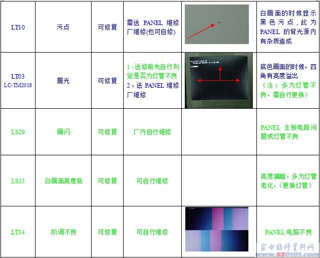 各厂PANEL灯管LIST(附:灯管的装取方法)