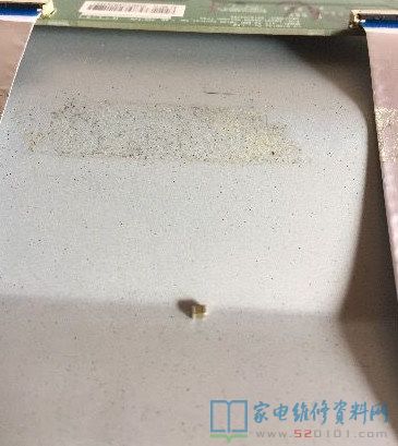 近期一客户拉来一台康佳液晶电视LED42F3700NF,说电视有声音没图像,客户联系售后检查说屏坏了,客户不信,所以就拿来给我维修部鉴定看看。首选通电开机,背光有亮,屏幕灰屏。打开外壳,测量逻辑板12v正常,测量VGH无电压,断开左右屏幕软排线,VGH电压恢复正常。到这里基本确定屏或边板VGH短路了,随后分别接通左右软排线,当接通右排线时图像一半正常一半白屏,一半正常,到这里基本确定屏幕左边有短路了。随即跟客户说明屏问题,约好明天中午来取机。接着测量左边板贴片电容短路,因为这个边板上的并联的电容好多个,无法直接找出有问题的电容,或者说屏短路也不一定。随后拿出电脑电源,把5V接在短路的电路上,然后接通电源(烧机法),发现其中一颗贴片电容冒白烟,接着把冒白烟的电容拆下,测量果真短路,然后再测量屏边板,短路消失。恢复软排线,通电开机,图像完美呈现,维修成功。